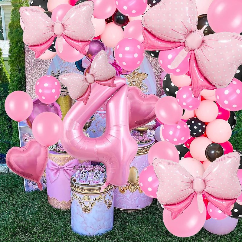 - Pink Birthday Decorations Kit: 1PCS 40inch pink 4 balloon with bow balloon, 2PCS bow balloons, 10PCS pink balloons, enough quantity to decorate your party.