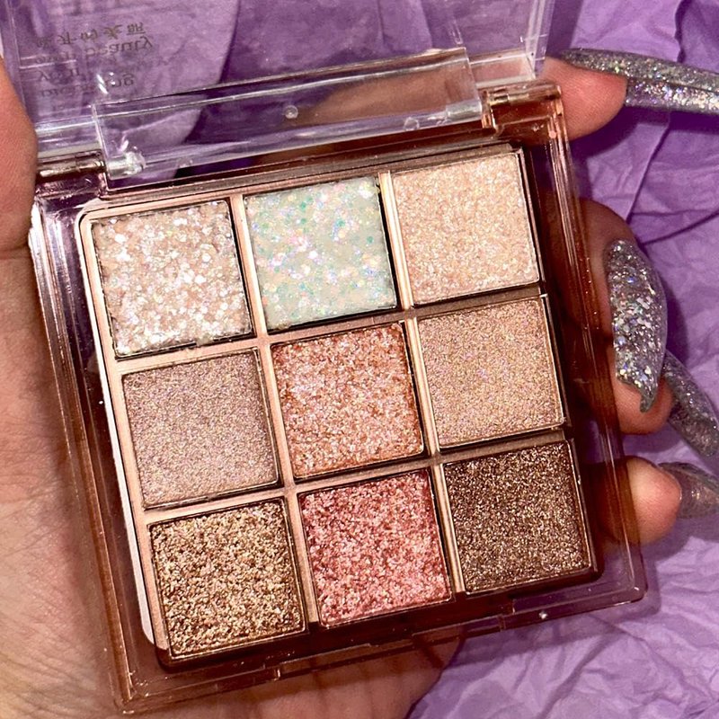 Pink Brown Violet Sparkly Eyeshadow Makeup Palette,Korean Natural Hypoallergenic Glitter Eyeshadow Palette,Highly Pigmented Shimmer Eye Shadow Palette Long Lasting Waterproof Blendable (13#)