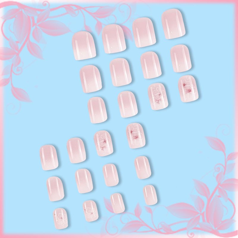 Pink Gradient Press on Nails with Flower Design, Glossy Short Square False Nails Gel Glue on Nails, Ombre Smudge Manicure Art Acrylic Fake Nails Stick on Nails for Coquette Women 24Pcs