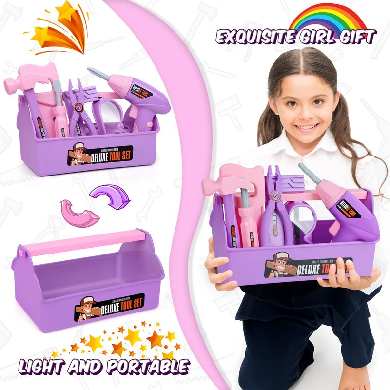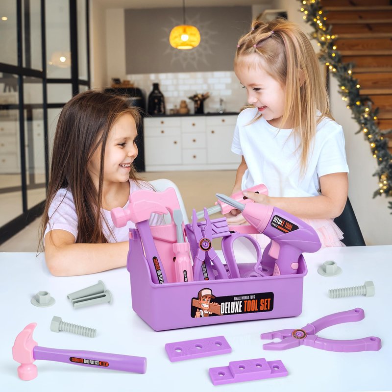 Pink Purple Kids Tool Box Toy Construction Tools (18PCS) Hand Drills,Can be Used at Home,Outdoors,or at Gatherings with Friends Pretend Play Learning Gift for Kids 3 4 5 6 7 Years Old