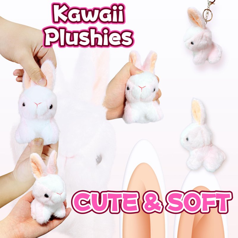 - CUDDLY BUNNY STUFFED ANIMALS: The soft and cute bunny plush toys are available in brown, grey, white and pink, which can accompany kids who like different color bunny toys. Our rabbit stuffed animals are very cute, the plush feel is super soft, and the keychain design makes them suitable for use as book bag charms, desktop decorations and more.