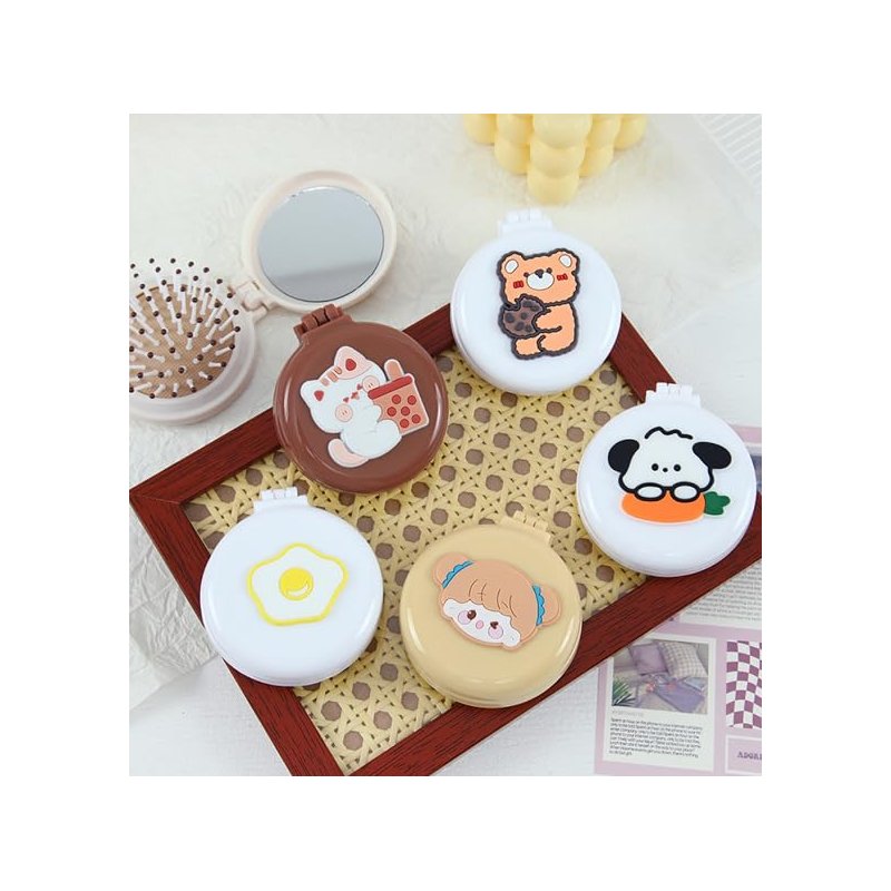Pink Rabbits Travel Hair Brush Pocket Comb with Mini Mirror Portable Compact Folding Hair Brushes Round Mini Compact Massage Comb for Girls and Women, Styling Tools and Appliances, Hair Combs (2H965)