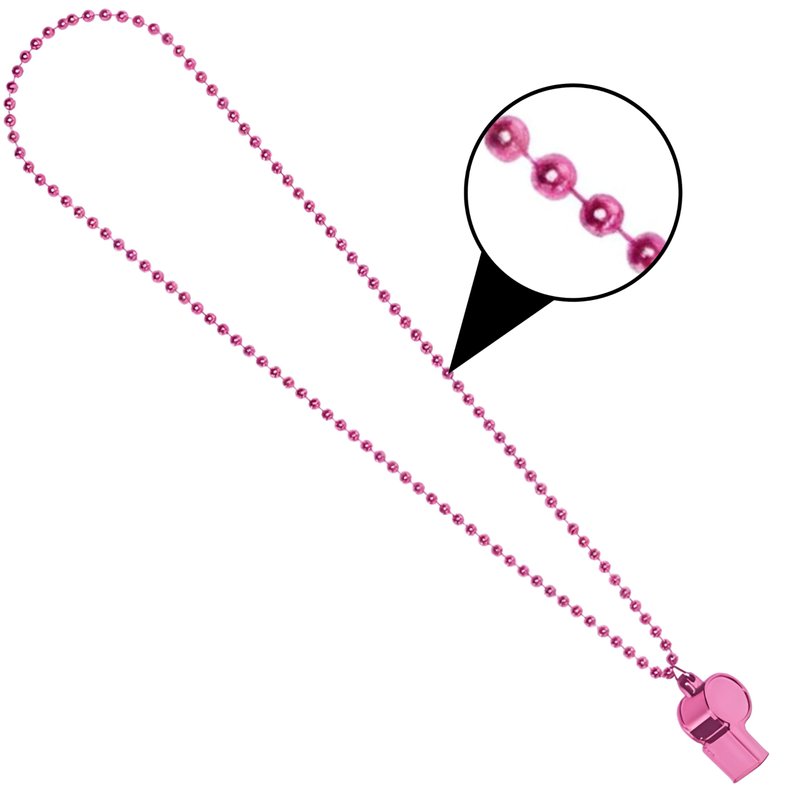 Pink Whistle On Chain Necklace (36") 1 Count - Premium Quality Plastic, Lightweight & Durable - Eye-Catching Design & Multipurpose Accessory - Perfect For Sports, Safety & Fashion