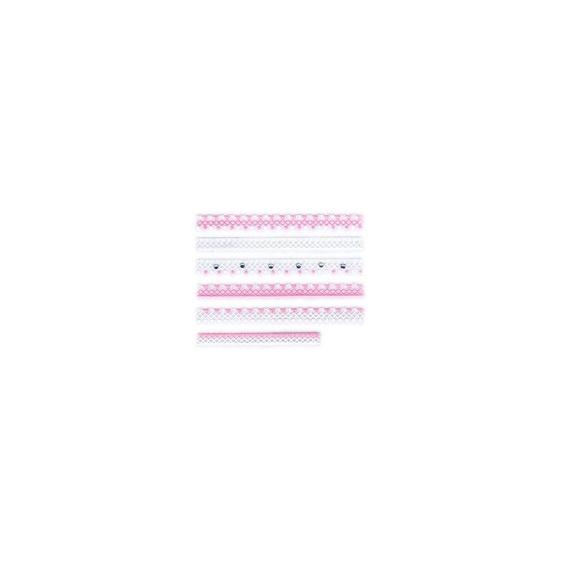 Pink & White Heart & Dot Lace Trim w/Rhinestone Strip Nail Stickers/Decals