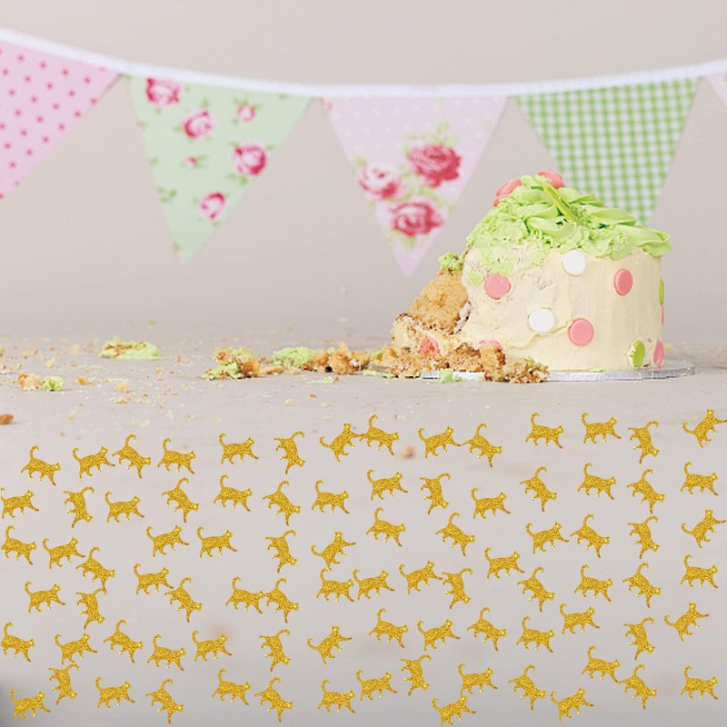PINKAAJ Set of 100 Cat Confetti, Glitter Cat Paper Scatter, Cat Birthay Party Confetti, Cat Smash Cake Decor, Pet Cat Birthday Party Decor, Kitty Birthday Party Supplies (GOLD)