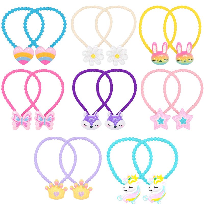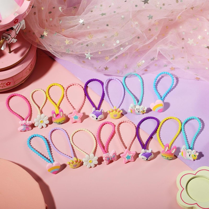 - đăOriginal And Trendy DesignăThere are 8pack/16pcs different kinds of flower shape elastic hair ties in the package, makes it looks lovely and active.Suitable for baby girls toddlers kids children which can be matched with various hairstyles and clothes.