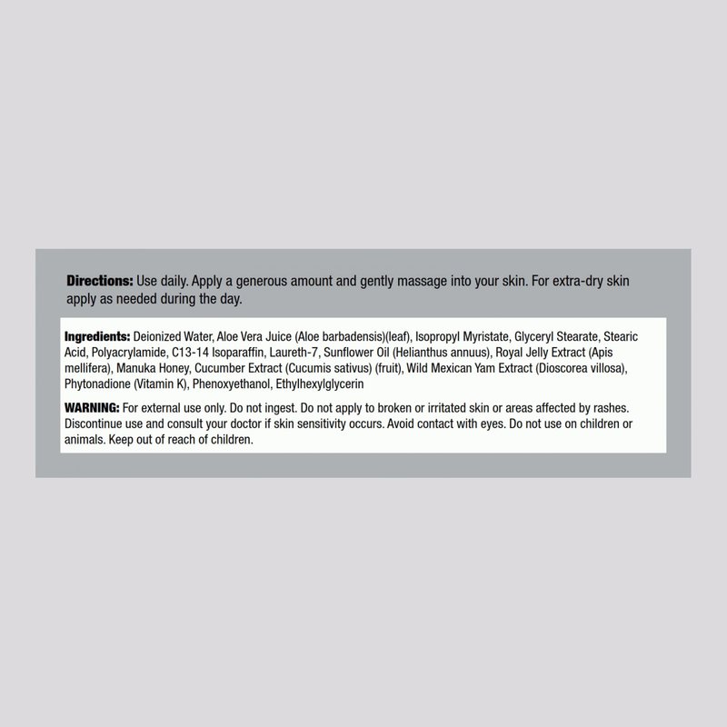 We add Royal Jelly because of its power derived from the Queen Bee. Both carefully collected from the native ecosystems of these buzzing insects, Piping Rock is pleased to present a perfectly balanced combination of Manuka Honey and Royal Jelly, plus other ingredients like Aloe Vera, in a cream that will leave your skin feeling moisturized, nourished and positively glowing!