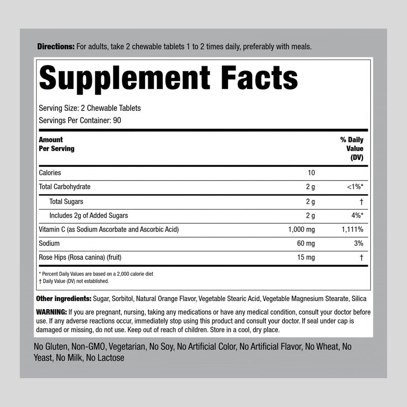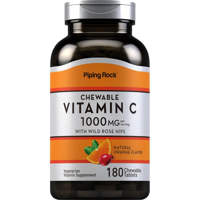 Piping Rock Vitamin C Chewable 1000mg | 180 Tablets | Orange Flavor | Vegetarian, Non-GMO, Gluten Free Supplement