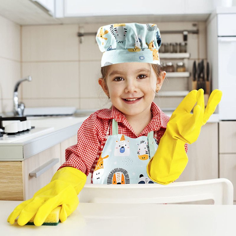 - LOVELY ANIMAL PATTERNS: Printed with cute cartoon patterns, this children apron and chef hat set will offer kids a lot of fun when used, no shrinking or color fading. Easy to clean and can be used multiple times