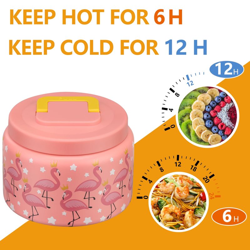 PIQUEBAR 8 Ounce Kids Thermo For Hot Food Vacuum Soup Thermo Insulted Food Jar, Lunch Container Food Thermo for School, Travel, Stainless Steel(Pink Flamingos)