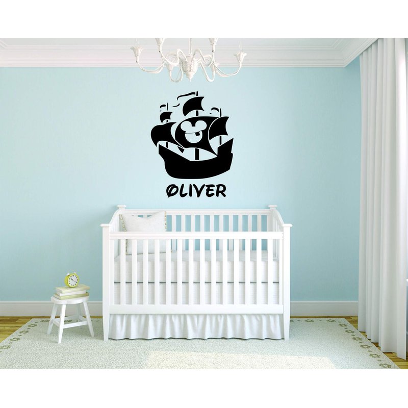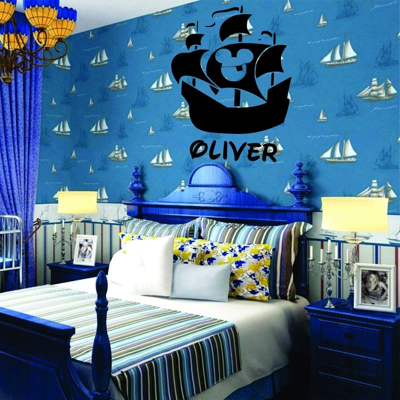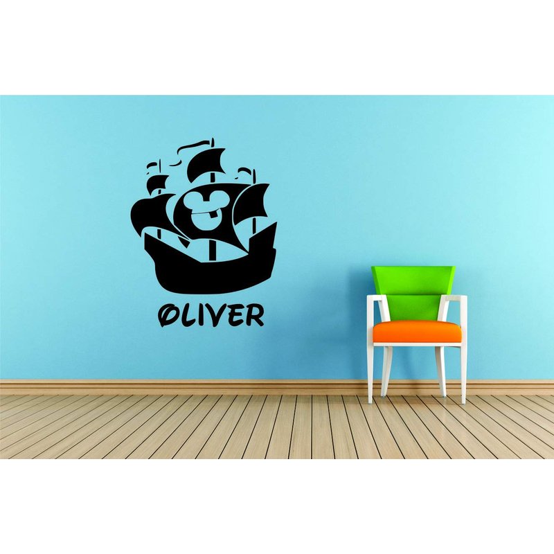 Pirate Ship Personalized Custom Name Wall Decals Wall Design Stickers Vinyl Removable Children Kids Rooms Girls Boys Baby Nursery Cartoon Size 20x20 inch
