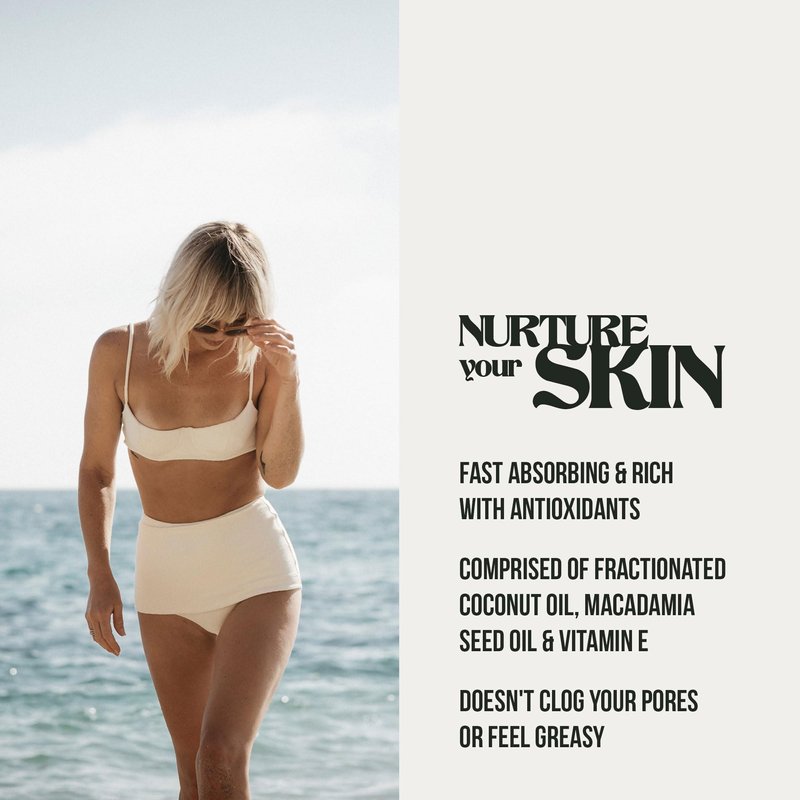 Our lightweight, fast absorbing Dry Body Oil is rich with antioxidants to help moisturize and nurture your skin and hair. Our formula, complete with coconut oil, macadamia seed oil, and vitamin E, is designed to provide weightless hydration.