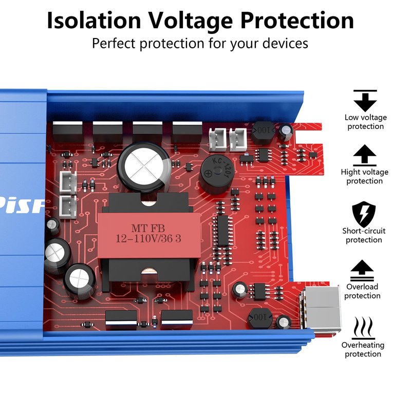 - 〖Double protection mechanism〗Smart chip + built-in fuse double protection mechanism. Once the product detects a fault by itself, the inverter will automatically turn off the current output and light up a red light to remind the user, avoiding the trouble of replacing the fuse.