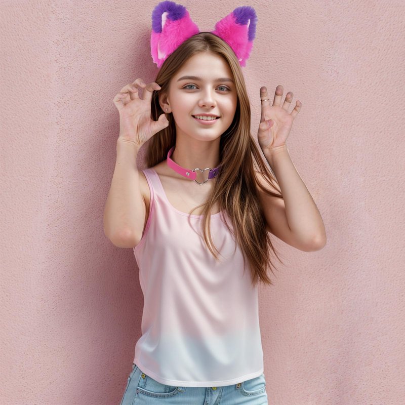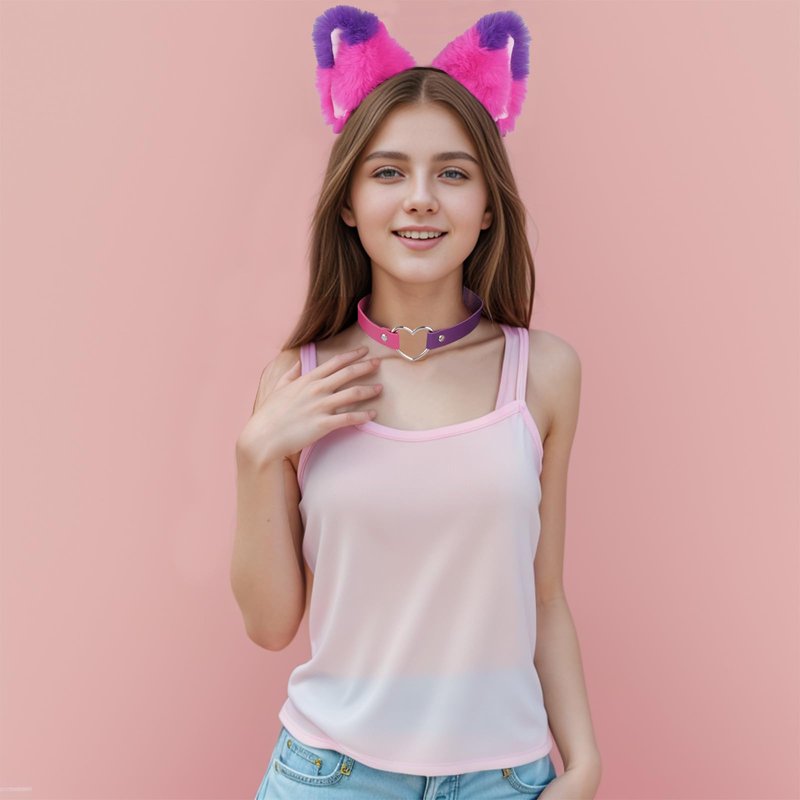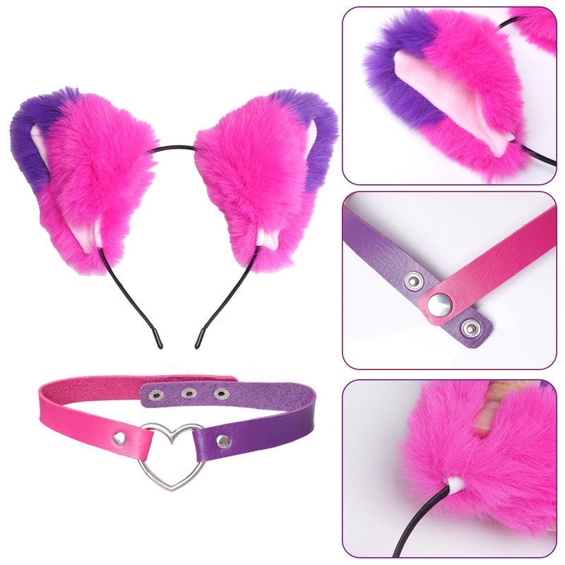 - You will receive: 1 furry pink and purple cat ear headband and 1 pink and purple heart leather collar in bright colours to make you stand out from the crowd