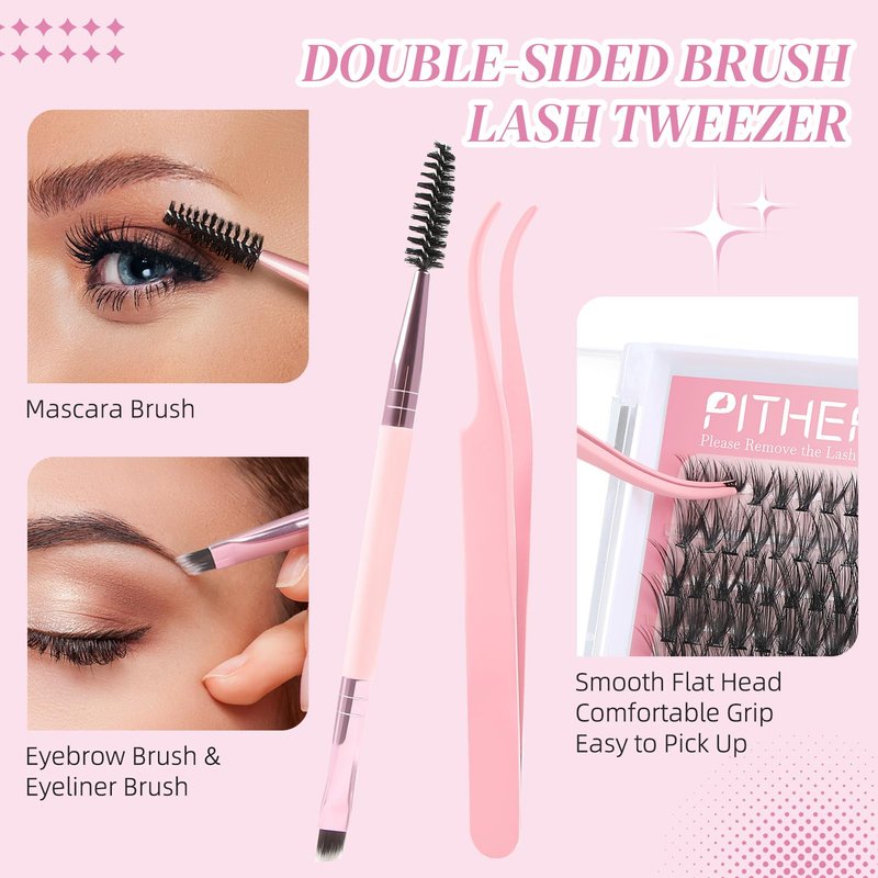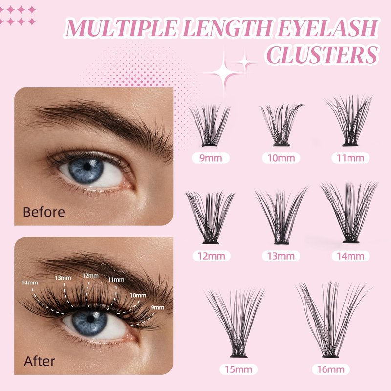 - โจใLash Extension Kit for Beginnersใ You will receive a lash clusters kit containing ๐๐๐ ๐ฉ๐๐ฌ ๐๐๐ ๐๐ฒ๐๐ฅ๐๐ฌ๐ก ๐๐ฅ๐ฎ๐ฌ๐ญ๐๐ซ๐ฌ, 8ml lash bond and seal 2-in-1 glue, 5ml lash remover for lash extensions, 1 flat-head tweezers, and 1 double-headed eyelash and eyebrow brush. The practical and easy-to-operate kit is beginner-friendly and a must-have tool for eyelash extension enthusiasts, making it easy to create beautiful lashes even at home.