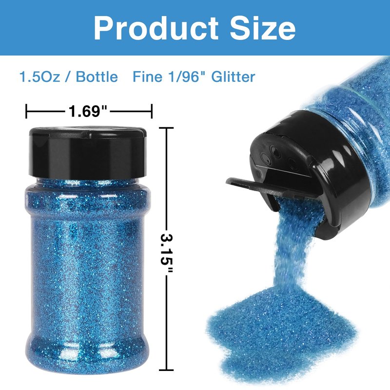 - Vibrant Colors Glitter:4 jars of vibrant colors resin fine glitter is 1/96" , each jar 1.5oz(Total 6 oz). Multicolor meets your different needs on various occasions as festival, dancing decorations, holiday decorations