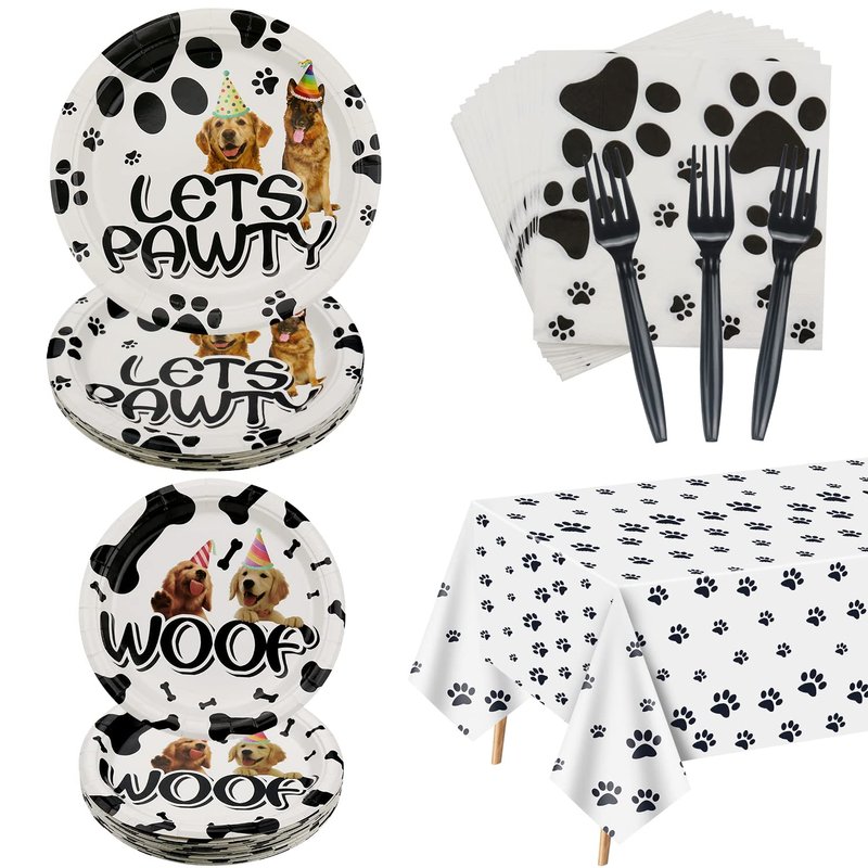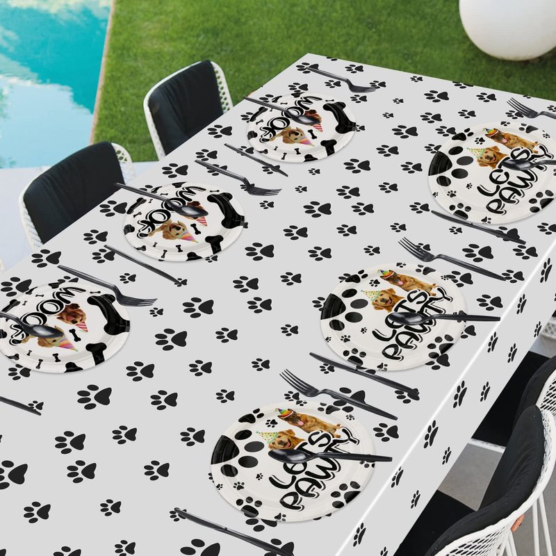 - High Quality: Plates and napkins are made of thick paper, lightweight, and safe. Forks and paw print tablecloths are made of plastic, which is waterproof, durable, and stain resistant.