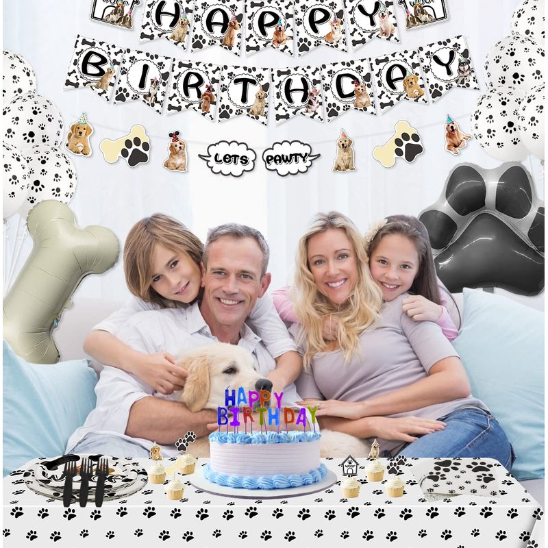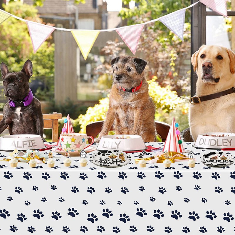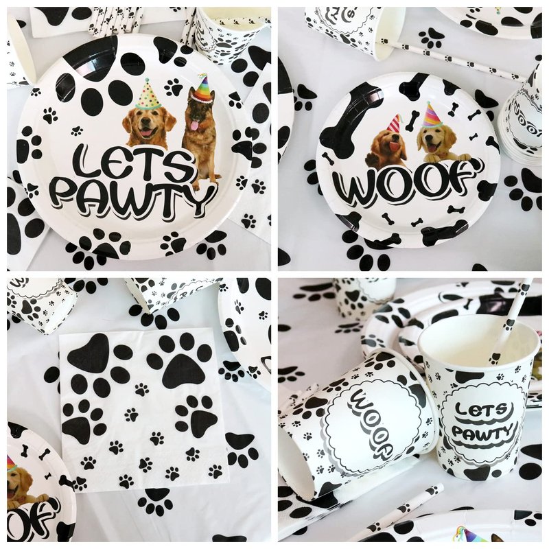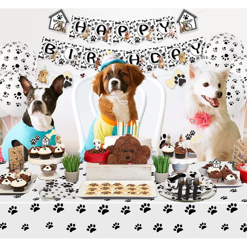 - Unique Design: These dog birthday party decoration kits are designed in classic doggy elements and patterns, cute black paw printed on the party tablecloth, which will be a great addition to your dog-themed party.