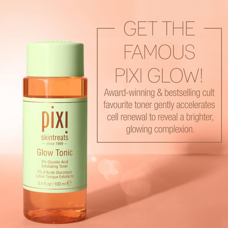 The Pixi Glow Tonic miracle working toner helps brighten the complexion resulting in a healthier glow. Formulated with 5% Glycolic Acid. Exfoliates, brightens and smooths skin. Aloe Vera, Ginseng and Botanical extracts work together to nourish and treat. Instant glow enhancer. Alcohol-free. Paraben-free. Not tested on animals.