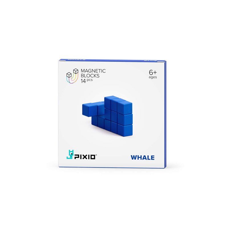 PIXIO BLUE WHALE: 14 magnetic PIXIO blocks, 1 color. The blue whale is the gentle king of the ocean. It’s the largest animal in the world, but now it can be created in miniature using PIXIO blocks. You’ll get 14 blue PIXIO blocks to create a little copy of this enormous mammal. Thanks to Mother Nature and its blue color, the whale is calm and intelligent. Use your imagination to create other blue creatures out of your PIXIO blocks, too.