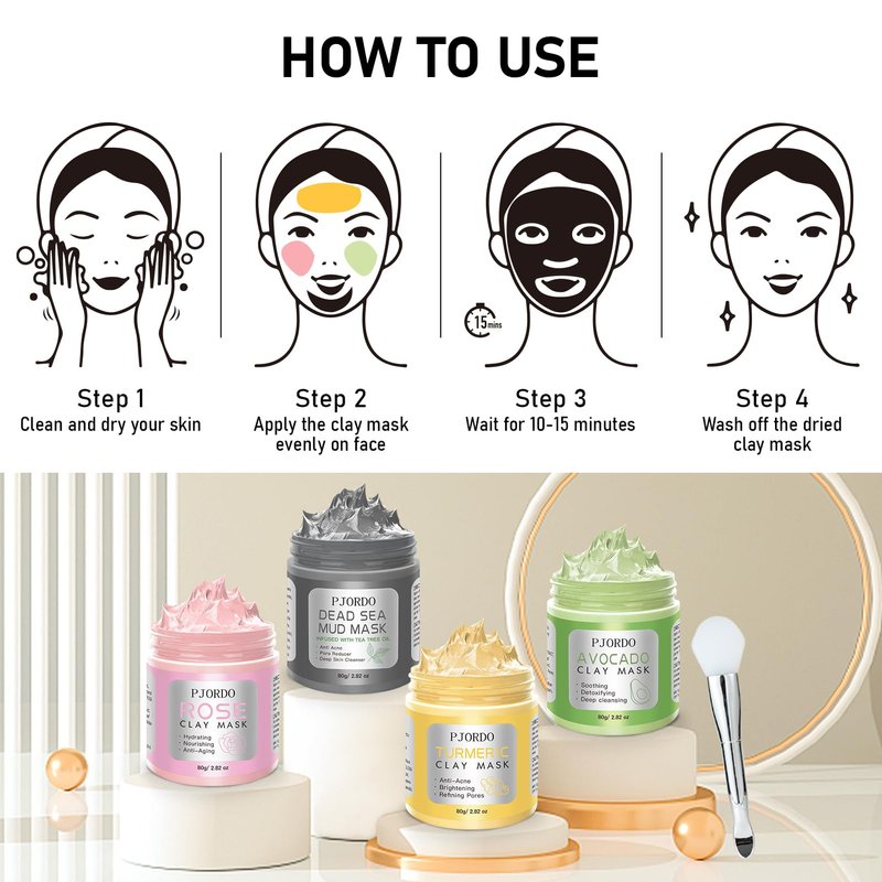 - Facial Mask Skincare Gift Set for Women: Great value clay mask kit, natural and safe for facial care for all skin types. A beautifully packaged 5-in-1 mud mask set with turmeric vitamin C clay mask 60g, dead Sea mud mask 60g, avocado clay mask 60g, rose clay mask 60g and mask applicator. It is a beauty and skin care set for women's self-care and a great gift for anyone.
