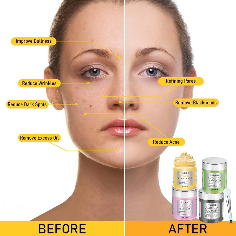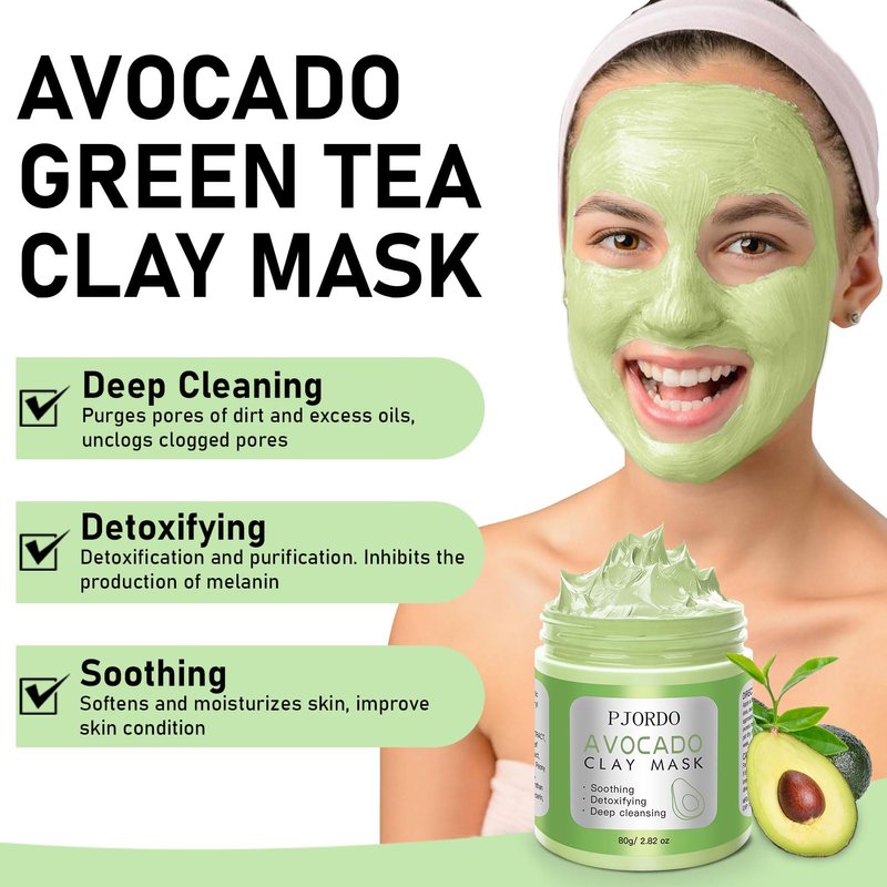 - Avocado Green Tea Clay Mask: This avocado deep cleansing mask helps to repair and protect the skin, remove dead skin cells and excess oil, deeply detoxify, purify and refine pores, help renew the skin, and leave the skin moisturized and soothed. Consistent use will achieve visible antioxidant effects, reduce fine lines, and give you younger and smoother skin.