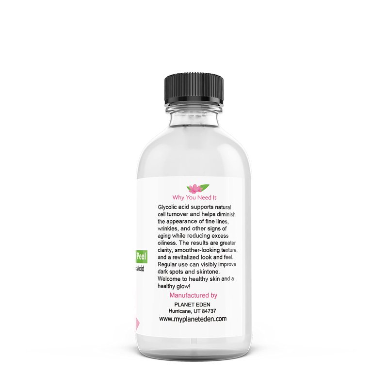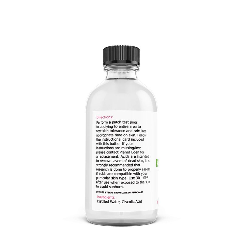 Planet Eden's 40% Glycolic Acid Peel will help diminish dark spots, sun damage, shrink pores, diminish the look of wrinkles and produce an even skin tone with repeated use for a beautiful natural glow. Glycolic acid will purge pores of dirt and oil clearing up stubborn blemishes.