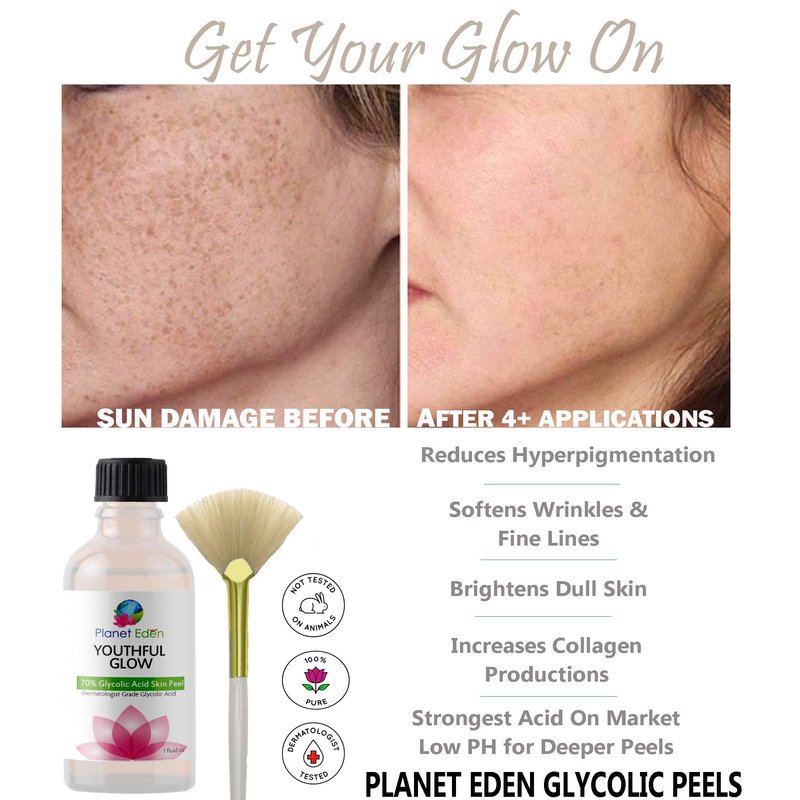 Planet Eden 50% Glycolic Acid Skin Chemical Peel Kit with Fan Brush- Excellent for Fine Lines, Wrinkles, Sun Damage, Scars, Dull Skin