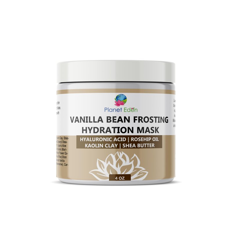 Planet Eden Vanilla Bean Frosting Face Facial Mask All Natural Spa Quality Skin Mask for Dry Dehydrated Skin Kaolin Clay, Vanilla Bean, Hyaluronic Acid, Aloe Extracts Soothing and Hydrating - 4 oz jar