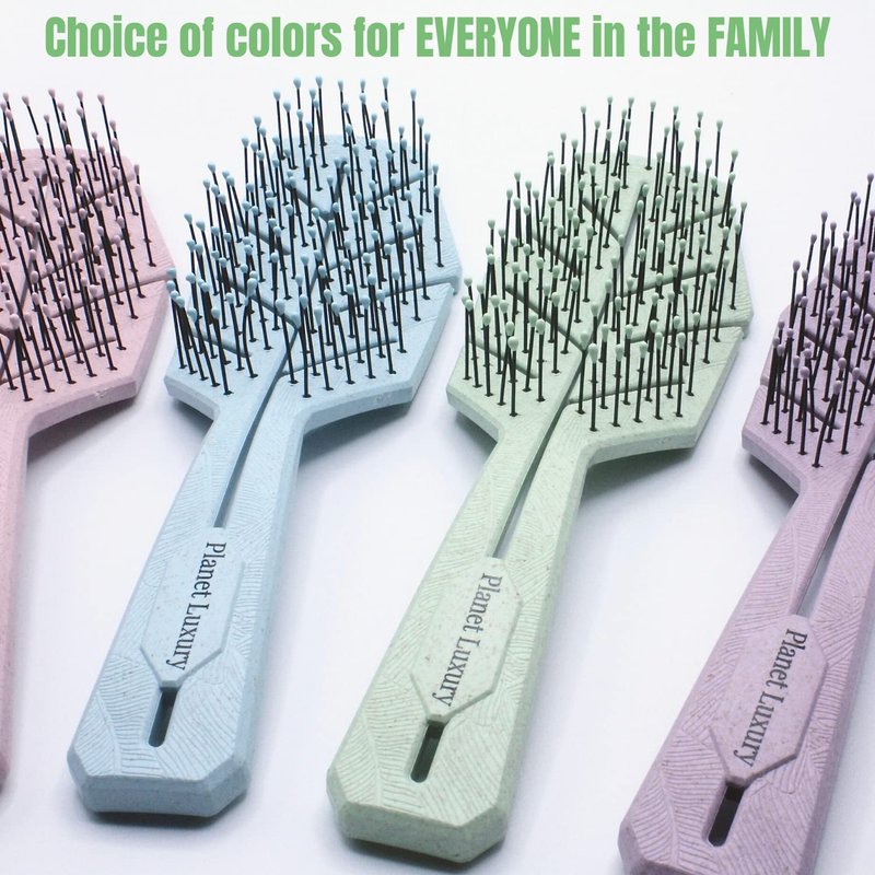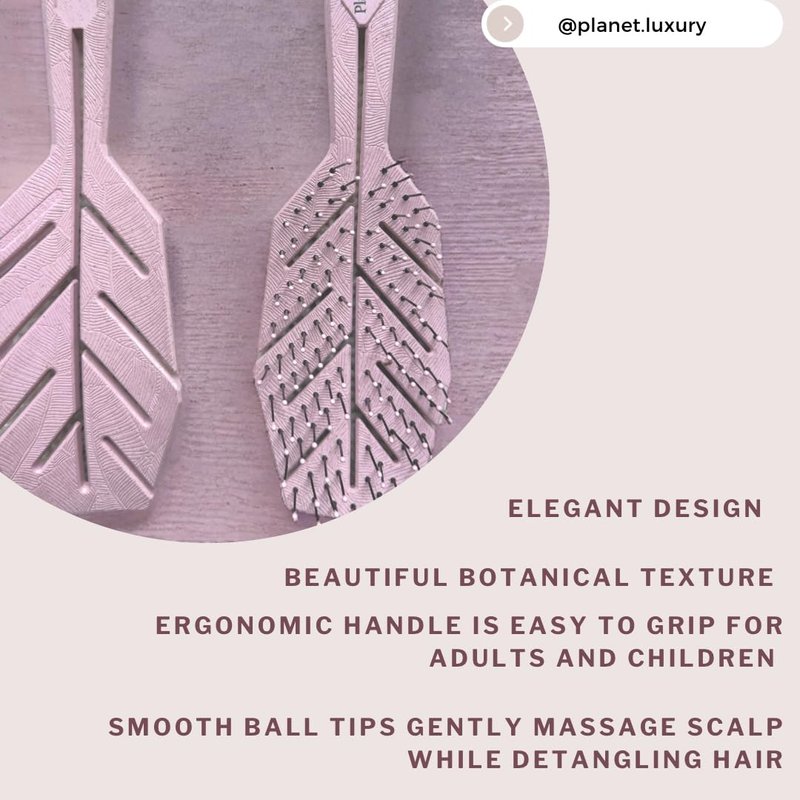 Introducing the ultimate hair care essential that every modern woman deserves – our exquisite Planet Luxury Detangling Hair Brush. Engineered to perfection, this multipurpose brush is a testament to sophistication and functionality, catering to all your hairstyling needs. Elevate your daily hair routine with a touch of elegance and ensure your locks receive the pampering they deserve. Unveiling the Beauty of Detangled Hair: Designed with an exclusive focus on women's hair care, our Planet Luxury Hair Brush revolutionizes the way you detangle and style. Gone are the days of hair struggles; our brush effortlessly glides through your tresses, gently unraveling knots and minimizing breakage. Embrace the luxury of pristine hair health and rediscover the joy of styling with ease. A Brush for Every Lady: From the youngest to the most experienced, this brush resonates with every family member. Crafted to perfection, it strikes the perfect balance between finesse and functionality. Watch as the young ones embrace brushing with our soft, flexible bristles, designed to make the detangling process a breeze. As for the adults, this brush seamlessly caters to a variety of hair types, ensuring a hassle-free experience for all. Earth-Conscious Beauty: At the heart of our Planet Luxury Detangling Hair Brush lies a commitment to earth-conscious choices. Crafted with a vented design that enhances airflow and reduces drying time, this brush is your gateway to both stunning hair and sustainable living. The luxurious handle and base, meticulously fashioned from wheat straw and resin, merge aesthetics with bio-friendliness. Make a statement with your brush, one that echoes your dedication to preserving our planet. Versatility Redefined:Diversity in hair types is celebrated with this exceptional brush. Be it straight, curly, wavy, coarse, fine, medium, long, or short – our brush is the answer to all your hairstyling dilemmas.