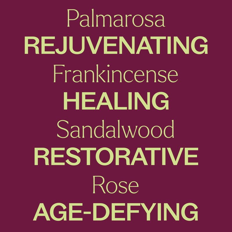 - Amazing Skin-Loving Oils: Your skin will love the benefits of some of the world's most loved essential oils, like Frankincense, Sandalwood, Neroli, and Rose. Together, these botanical powerhouses will support your skin's elasticity, texture, and vibrance.