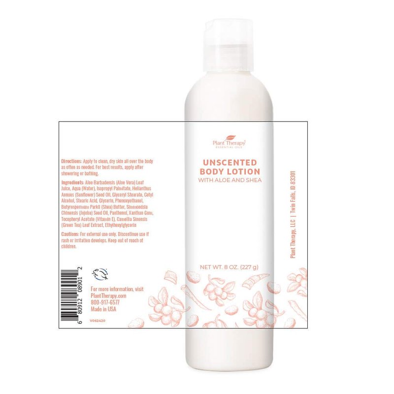 Plant Therapy Unscented Body Lotion with Aloe and Shea, Hydrate and Nourish Skin with Botanical Ingredients, 8 oz