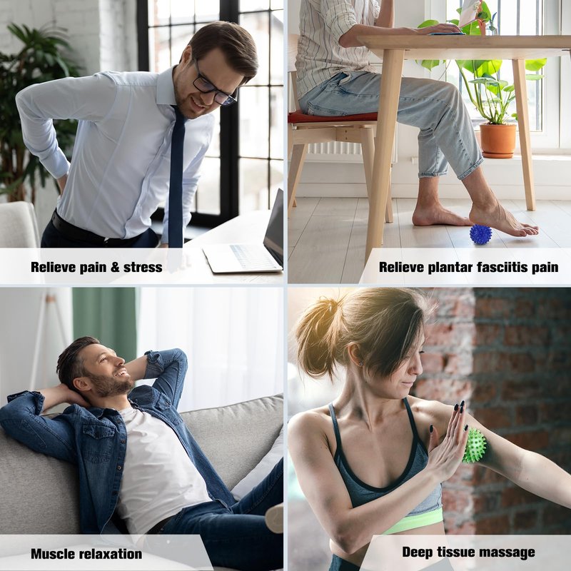 - 【Foot Massager for Plantar Fasciitis Relief】The plantar fasciitis ball massager and roller applies acupressure for pressuring on feet to deep tissue massage, decrease tension, and improve blood circulation. It is perfect for plantar fasciitis, acupoint, tired feet pain, aches, heel spurs. Also, they effect to hands, forearms, shoulders, back, feet, hamstrings etc.