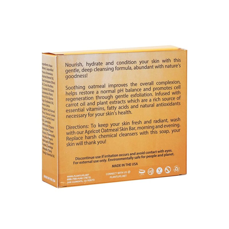 Plantlife Apricot Oatmeal 3-Pack Bar Soap - Moisturizing and Soothing Soap for Your Skin - Hand Crafted Using Plant-Based Ingredients - Made in California 4oz Bar