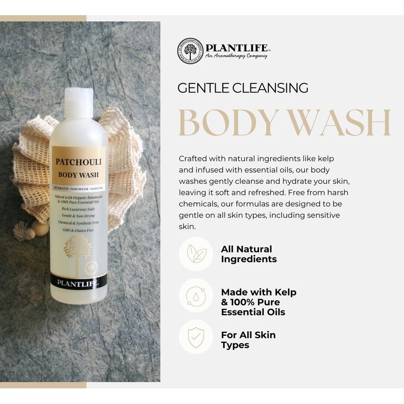 Plantlife Patchouli Body Wash - GMO and Gluten Free Gentle and Moisturizing Body Wash That Contains Only Ingredients Straight from Nature - Made in the USA 14 oz