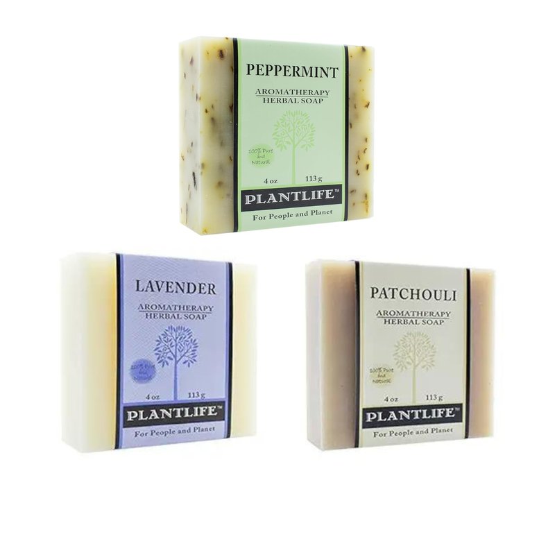 Plantlife Patchouli, Lavender, and Peppermint Bar Soap Bundle of 3 - Moisturizing and Soothing Soap for Your Skin, Handcrafted Using Plant-Based Ingredients - Made in California, 4 oz Bars