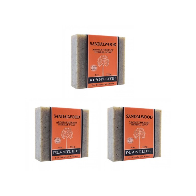 Plantlife Sandalwood 3-Pack Bar Soap - Moisturizing and Soothing Soap for Your Skin - Hand Crafted Using Plant-Based Ingredients - Made in California 4oz Bar