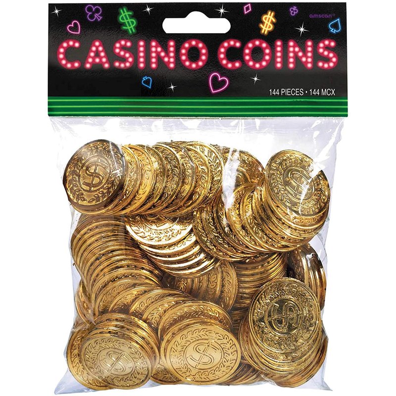 Gotta have money to win money! This pack of Casino Gold Coins will make anyone look like a high roller. Almost real looking coins come in packages of 144 piece. Made of gold plastic.