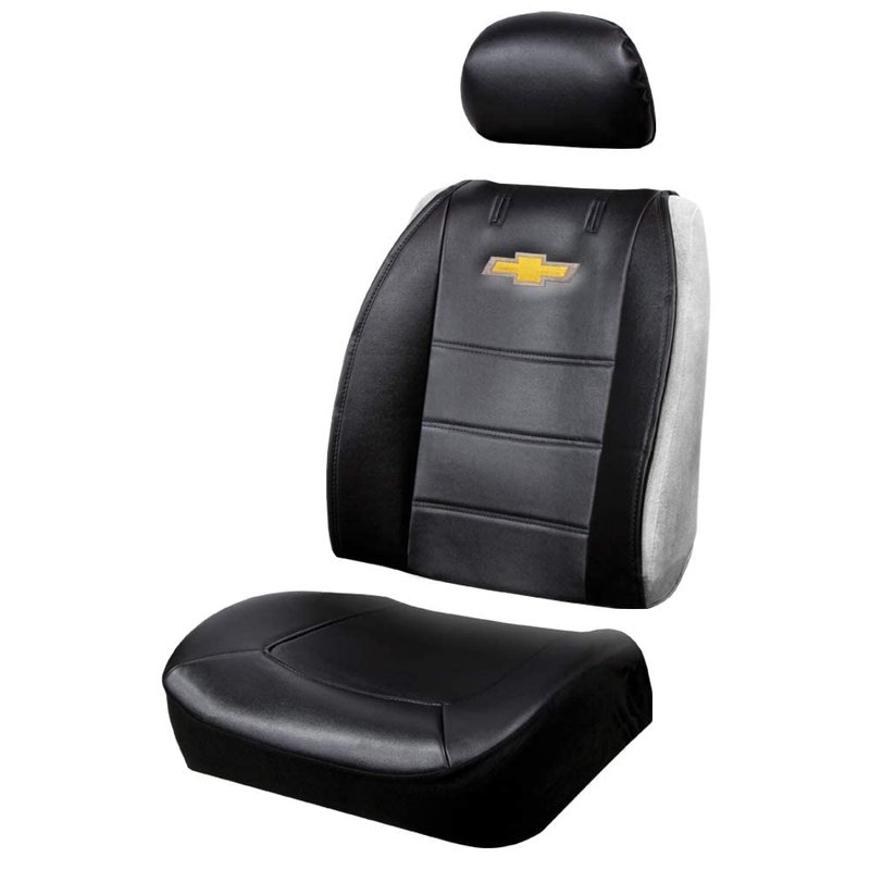 Plasticolor 008599R01 Chevy Chevrolet Logo Universal Fit Car Truck or SUV Sideless 3-Piece Seat Cover w/Head Rest , Black