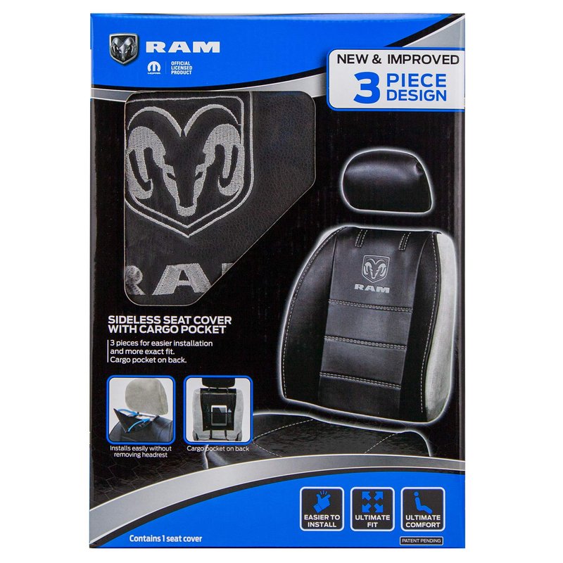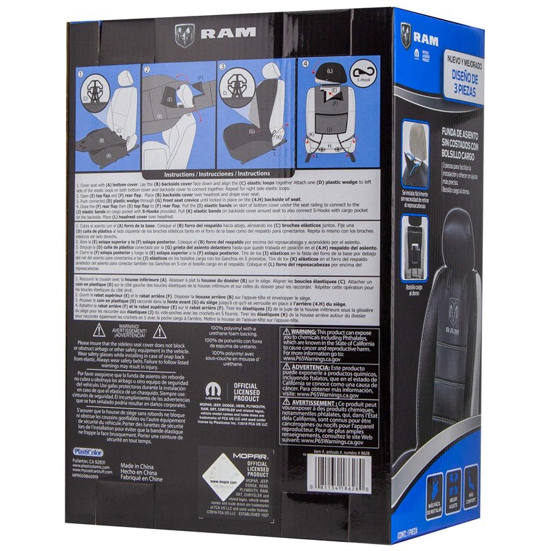 - Plasticolor’s RAM gray logo seat cover is officially licensed by Dodge
