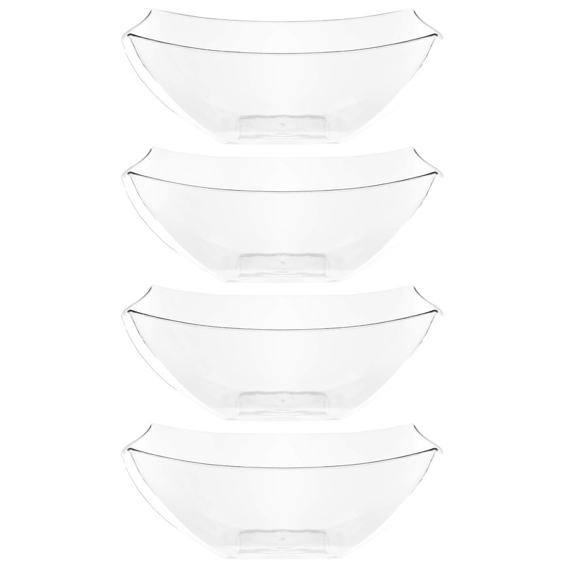 PLASTICPRO Disposable Square Serving Bowls, Party Snack or Salad Bowl, Plastic Clear or White Pack of 4 (16 OUNCE, Clear)
