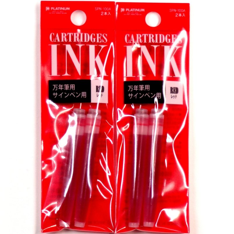 Ink Cartridges: 2 cartridges ×2 Packs/total 4 cartridges. Mechanism: Cartridge only. Water-based ink . Ink Color : Red. It is an authentic fountain pen of the cartridge-type which attached the alloy to the nib. The alloy of a nib reduces friction with paper and realizes a smooth feel of writing. Nib: Stainless. Character width: F (fine).