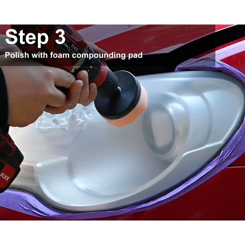 - Easy to Use: Just a 3-step process is required to remove scratches and restore cloudy, dull lenses. Step 1: Dry sand the lens with purple grit sanding discs ((P1320 → P500 → P600 ). Step 2: Sand with orange grit high-precision waterproof sanding ((P1000 → P2000 → P3000 ). Step 3: Polish with a foam compounding pad.