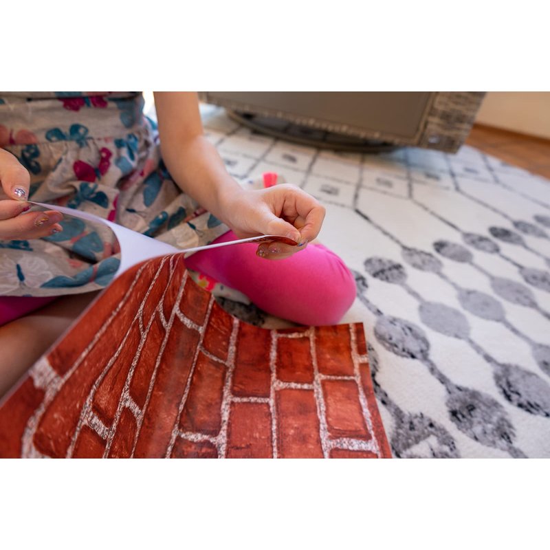 - HIGH QUALITY: Package includes 18 high quality self-sticking panels each 18” x 18” (45cm x 45cm). These stickers were specially designed to adhere to cardboard boxes. But you can also peel off and reposition if needed! The surface material is thick, durable and easy to clean – perfect for holding up during playtime. Slowly smooth them with your hand as you apply to boxes or apply quickly for a more wrinkled, realistic brick effect.