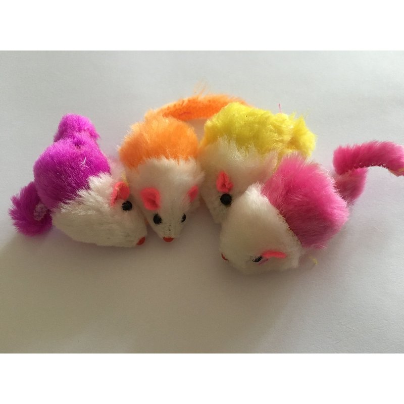 • Mice rattle, if you shake these mice a distinct rattling sound can be heard, it is almost the same size of natural house mice and are approximately 4" Long with its tail. Set of 10 of mixed Colors.