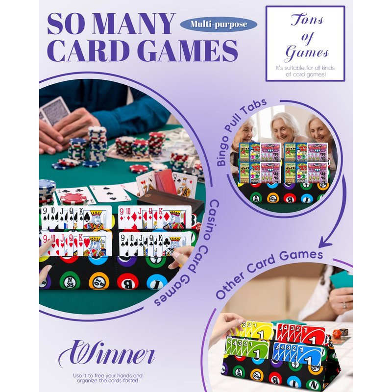 - FREE YOUR HANDS -- This card holder was born for all kinds of playing card games and bingo pull tabs or even Mexican loteria cards!