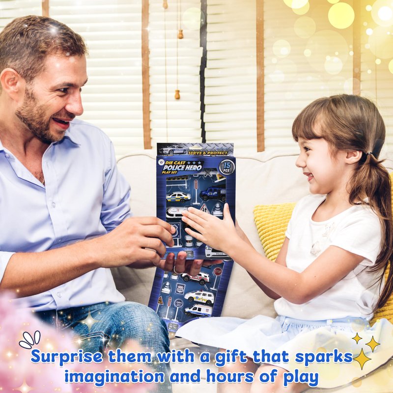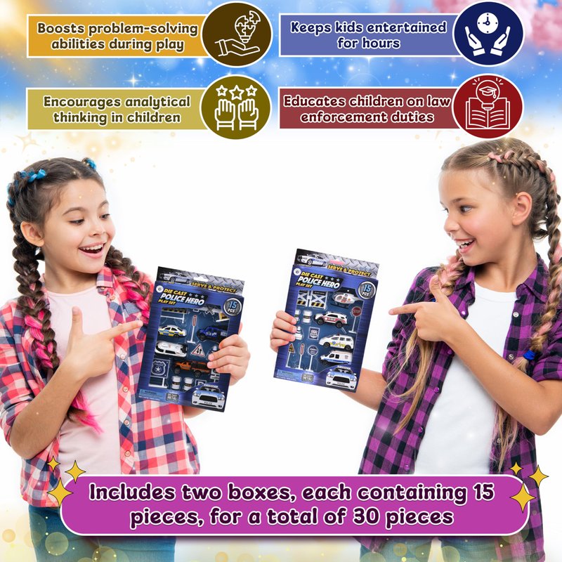 Playset, Forest & Twelfth Kids Set of 2 15pcs Die Cast Mini Police Car Toy Set for Kids & Toddlers, Promotes Creative Pretend Play, Skill Development, Fun All-Occasion Gift Idea (Police Playset)