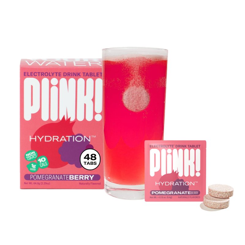 - POMEGRANATE BERRY - This pack contains 48 servings of Pomegranate Berry Plink! An award winning flavor, where the bright, slightly tart pomegranate is rounded off with gooey juicy blackberry.