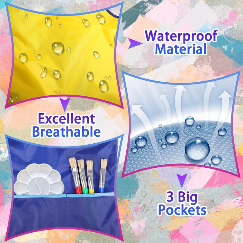 - Premium Quality: Kids art smock is made from smooth, water-resistant polyester material that's BPA-free and durable. Made of waterproof material, your child's clothes will stay clean. Easy to machine wash and water wash.