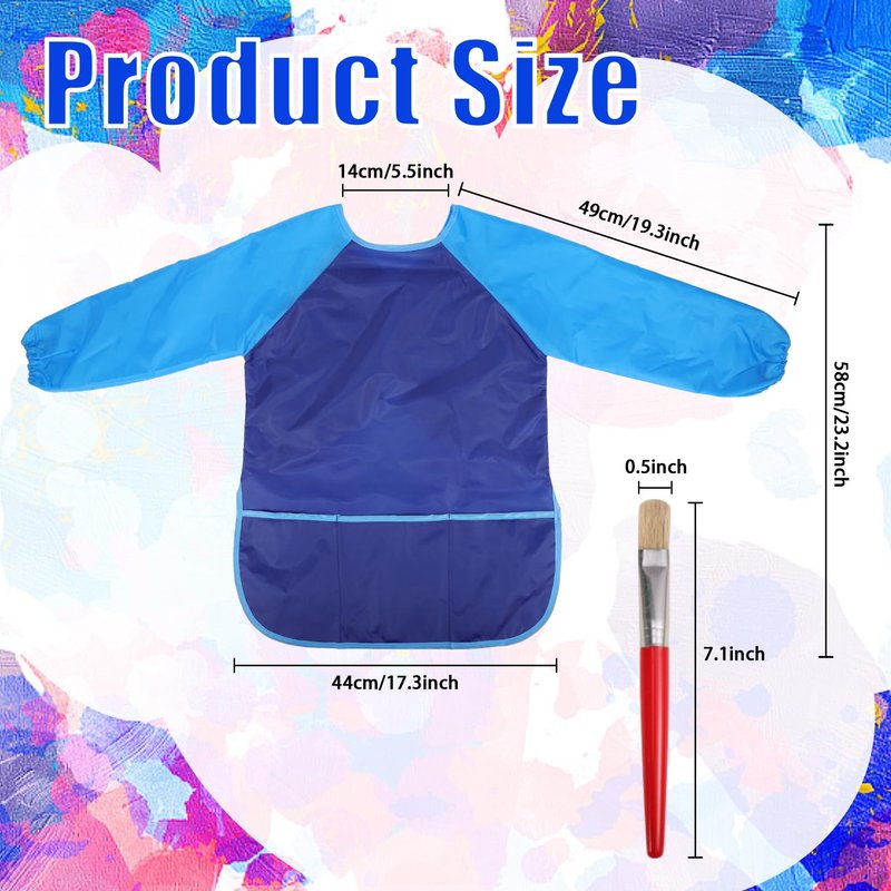 - Overall Size: Toddler painting smock measures 23.2 x 17.3 inches, paintbrush size is 7.1 x 0.5 inch. Three roomy front pockets can hold pens, paints, snacks and other small items. (Please refer to clothing sizes due to different body types)